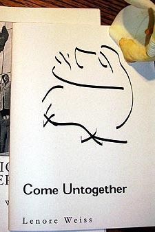 | Lenore Weiss's bio: Lenore Weiss lives in Oakland, California where she runs a Web site for a transportation company. She also serves as the Middle East Peace Coordinator for Kehilla Community Synagogue. In 2003, she was named as a finalist in the Poet & Writers "California Voices" contest. Her poetry has been published in Paterson Literary Review, Raven Chronicles, Canadian Women Studies Journal, Blue Collar Review, FrogPond, Praxis, Room, Androgyne, Verbum, Mosaic, The Graybook, The Louisville Review, Contemporary Women Poets, Tunnel Road, and Alpha Beat Soup. Periodically, her poems are featured at: http://www.poetrymagazine.com/archives/2004/Winter4-5/Current/weissl.htm and http://corpse.org/issue_14/new_economics/weiss.html |